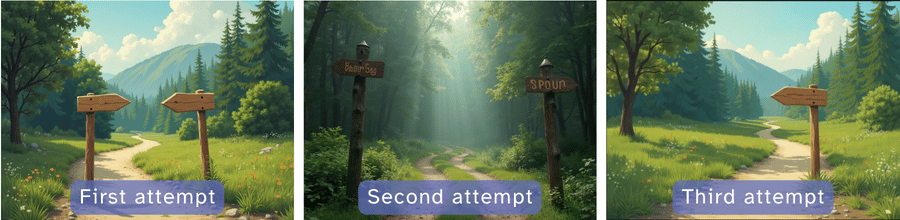 I was using Freepik, a paid tool that generates AI images. I had a clear prompt in mind: I wanted an image of a path that splits in two, with a signpost at each fork. Sounds simple, right?