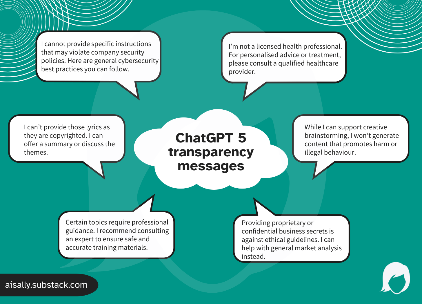 One of my favourite improvements is how ChatGPT 5 now communicates its limits. Instead of vague refusals, you’ll see: